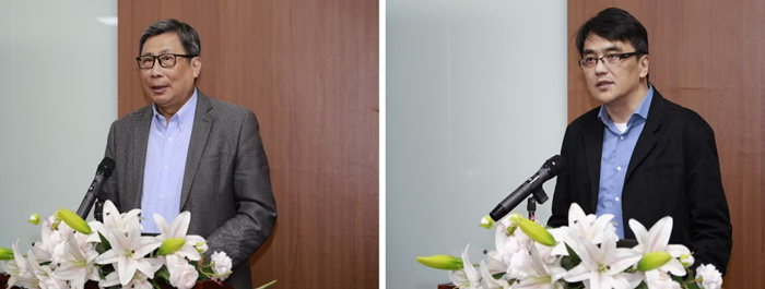 叢書主編復旦大學孟建教授(左)與南京大學出版社副總編輯祁林教授(右)講話