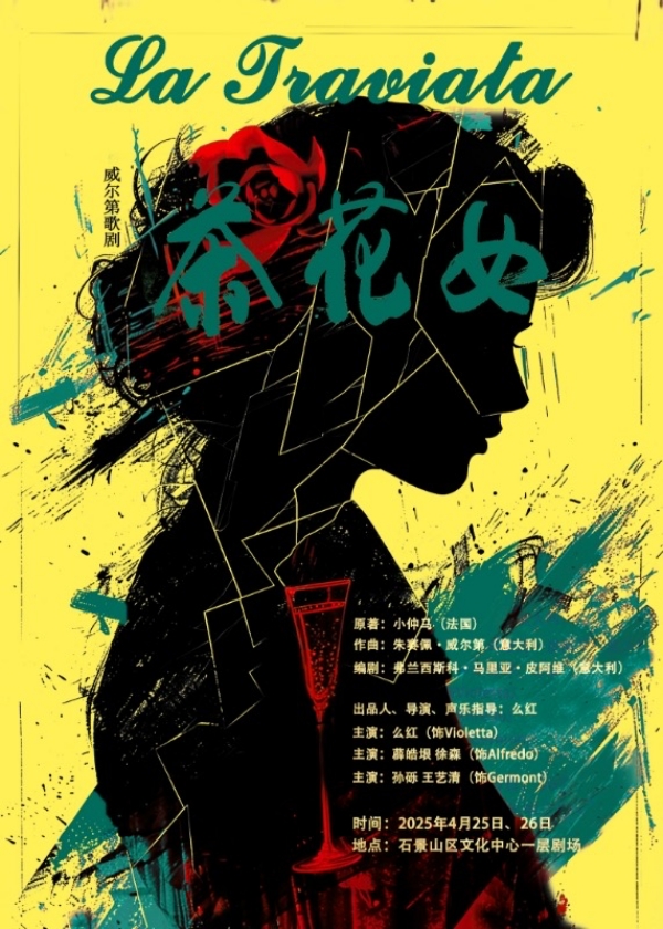 4月25日和26日兩天,一個新版歌劇《茶花女》將在石景山區文化中心上演。這部《茶花女》由女高音歌唱家么紅與東方演藝集團、石景山區文化中心共同舉辦。她身兼多職擔任該劇出品人、導演、主演以及聲樂指導。這部新版歌劇應當是有史以來首次在石景山區上演整部的西洋歌劇,同時它的上演無疑大大拓展了北京城的歌劇版圖,今后石景山觀眾可以在家門口看歌劇了。