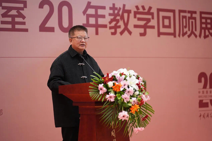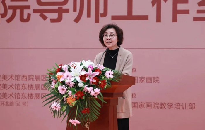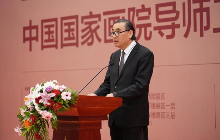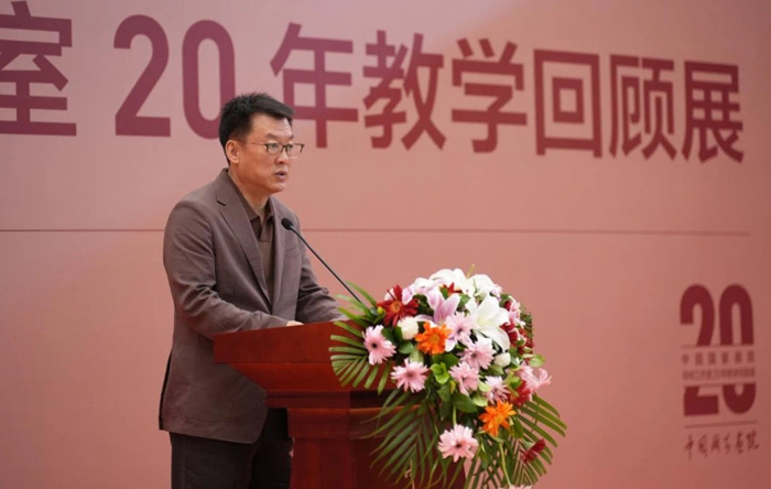 邱雷回顧了中國國家畫院開創性地建立導師工作室制這一獨具特色的藝術人才培養模式的歷程,并談道,本次教學回顧展自2月份開始面向歷屆導師工作室全體導師和學員進行作品征集,得到了積極反饋,共有百余位導師參加了此次展覽;收到學員投稿作品千余件,經過專家評審組的初評、復評,最終甄選學員作品近400件。此次展覽分為三個展區,清晰展現了中國國家畫院導師工作室20年的師承脈絡和發展演變,集中陳列了歷年導師工作室授課的教學文獻,是中國國家畫院導師工作室20年教學成績的一個縮影。我們將繼續堅持以人民為中心的服務導向,以藝載道、以美鑄魂,為新時代中國美術事業培養更多優秀人才,為傳承中華優秀傳統文化而不懈探索。