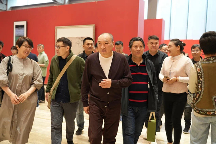 燕東升在致辭中對中國國家畫院的教學工作表示肯定。他談道:“20年來,中國國家畫院的教學成果斐然,始終扎根于中華優秀傳統文化的深厚土壤,秉持‘因材施教、高端起步、技道并進’的理念,融匯傳統師承與現代教育精華,形成了獨具特色的教學體系,在業內乃至社會各界享有良好聲譽。我們始終站穩政治立場,把好意識形態關。我們始終堅持‘以人為本’,將人格修養與藝術培育并重,注重導師與學員間的深度交流,強調作品的人文內涵與藝術獨創性,致力于培養德才兼備、德藝雙馨的藝術人才。這種教學模式,不僅傳承了中華傳統美學精神,更契合了新時代黨對文藝工作者‘培根鑄魂、守正創新’的要求。此次教學回顧展不僅是中國國家畫院矢志不渝、砥礪奮進的教學培訓工作的歷程展示,更是教學培訓成果的生動寫照。中國國家畫院將繼續堅守初心使命、深化教學改革、優化課程設置、加強師資隊伍建設,培養更多藝術人才,為美術事業的繁榮發展貢獻智慧和力量!”