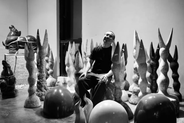 意境所引發的內心共振,為整個藝術場域注入了向內探索的深度?!八囆g不僅是創造,更是觸摸文明胚胎的心跳?!爆F場展出了藝術家袁恒三千余件作品中的數十件雕塑珍品,宛如投入心湖的巨石,在觀者心中激起層層漣漪,引發強烈共鳴。當觀者近觀這些雕塑作品時,會發現,中國傳統文化元素被反復解構,化作創作的母題,而這一過程,既是對古老文化基因的當代激活,也是一場深度的自我反思與文化溯源。