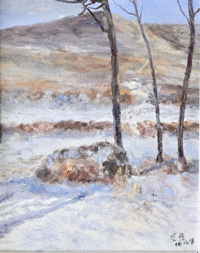 王勝澤認為,寧夏這片廣袤而又蘊藏著歷史的土地,給張哲的創作提供了源源不斷的靈感,深邃的山川、蒼茫的黃土高原和淳樸的民風,都是張哲筆下的描繪的對象。他的油畫作品不僅是家鄉大自然的簡單再現,更是對自然、對人文、對歷史深刻洞察的藝術表達?!白x張哲的油畫作品,每一座山峰、每一條溪流、每一片草地都在他的筆下凝聚成了豐富的意義,它們與當地的民俗、歷史、風土人情息息相關,構成了一種獨特的視覺語言。另一方面,張哲通過寫生,將時代的呼喚融入其中。在他眼中,家鄉熟悉的每一片景象都承載著歷史的深厚積淀和時代的變遷,而這些變遷正是他藝術創作的源泉。他通過對家鄉山川的深入觀察與獨特表現,讓這一片風景在他的畫筆下煥發出新的生命,展現出其所蘊含的獨特精神?!?/p>