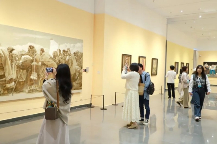 儀式結束后,中國美術館研究部主任、“江山·人民”展覽策展人裔萼為觀眾導覽(全程直播)