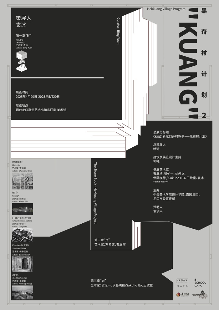本次展覽由中央美術學院設計學院師生共同策劃,在龍口市政府、地方企業的大力支持下,攜手20余位國內外藝術家開展實踐,匯聚了教育、藝術、技術與政策多個維度的力量,以黑夼村采石場為研究對象,探討龍口鄉村需要什么樣的敘事?鄉村生態為主體視角的敘事是怎樣的?以及我們作為被敘事者和聽眾,如何傾聽采石場的聲音?鄉村的聲音?以集體策展的方式回應鄉村的呼喚,回應當下鄉村發展中所面臨的文化記憶、技術轉型與空間更新等問題。因此,整個展覽基于鄉村“圖像、剖面、聲音、全息、身體”幾種視角形成一場五位策展人基于鄉村現實的集體共構實驗。