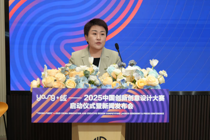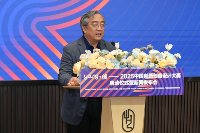 此次大賽的策劃人、清華大學美術學院工藝美術系主任岳嵩介紹了大賽的籌備情況:“Young.絨—2025中國創新創意設計大賽”將圍繞“探索羊絨纖維的無限可能”主題展開,旨在通過設計語言,融合傳統工藝與現代技術,兼顧藝術價值與市場需求,展現羊絨等纖維制品在全球市場的多元化潛力。大賽將重點關注設計作品中的環保理念、創新性、實用性和文化內涵,以推動纖維材料在時尚、青春、藝術、家居等多領域的應用與發展。
