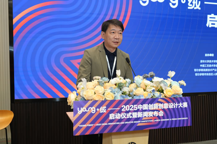 清華大學美術學院黨委書記覃川在啟動儀式上說道:“‘Young.絨’作為一次聚焦材料、關注設計、鏈接產業的全國性賽事,體現了高校學術研究、教育實踐與社會需求之間的深度回應。我們希望通過這次大賽,引導青年設計師從材料出發,在生態可持續、傳統工藝、科技融合、當代表達等維度展開深入思考,真正實現‘材料—設計—文化—產業’的價值閉環?!?/p>