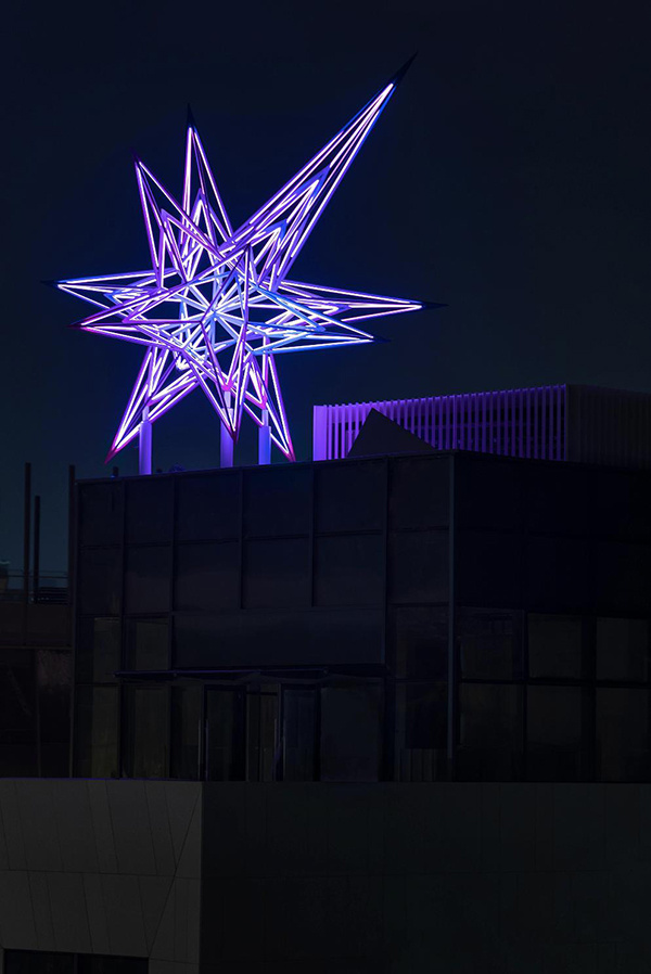 在悠遠的航海歷史中,星星一直承擔著指引方向的角色,它們代表著遠航的方向和歸家的曙光。作為華南地區重要的郵輪母港城市,深圳一直是中國對外貿易的“海上門戶”。在創作這件作品時,藝術家希望它既是一個十足的“天外來物”,又能夠與周圍的環境相得益彰。他希望通過這件作品提醒人們重新看待自然與宇宙的力量,拓展我們久居城市之外的視角,展開對星空的仰望與好奇。同時,他也希望這件作品能夠像一座燈塔一樣,激發新的想法和連接的誕生。