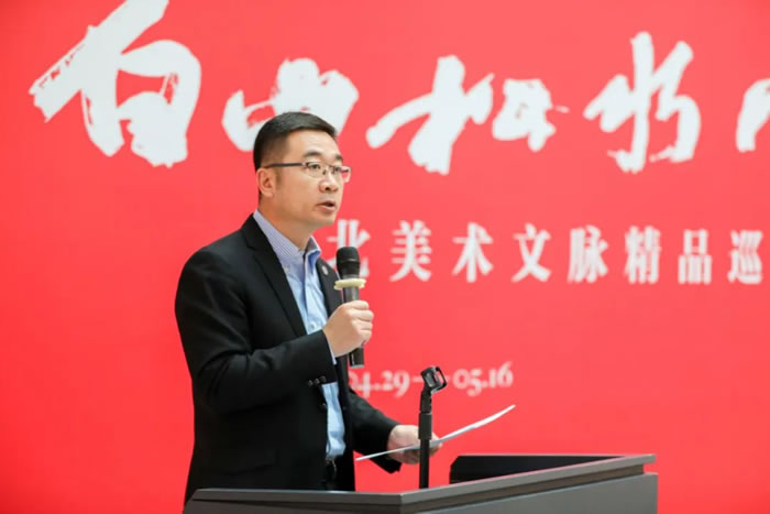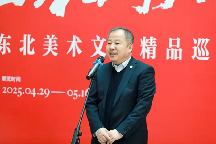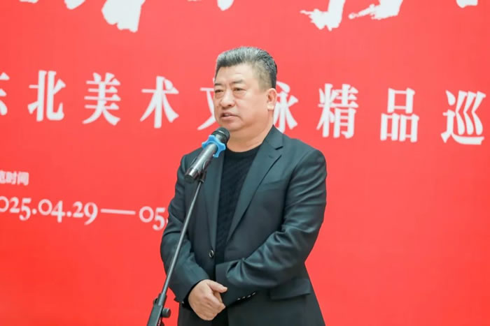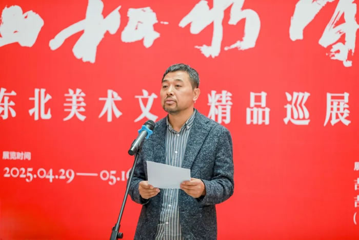 藝術家代表、吉林大學藝術學院副院長鄭海標致辭:一個多世紀以來,一代代藝術家,深耕于東北這片黑土地,創造出東北美術鮮明而又突出的時代面貌。作為新一代的美術工作者,深知所肩負的時代責任,會以更加獨立的精神自覺,不斷探索地域美術新的發展方向,共同描繪東北的山河之美、自然之美、人文之美。