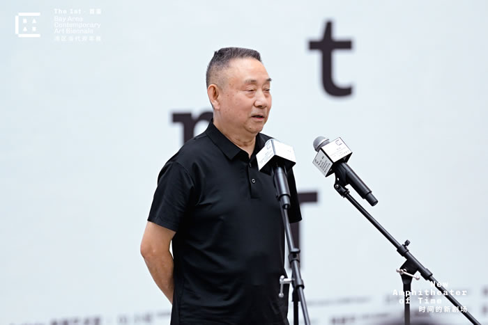 皮道堅首先回溯了中國當代藝術四十年的發展史,認為進入新世紀后灣區當代藝術活躍度上升,影響力逐漸擴大,并成為推動社會發展的重要力量;其次,溯源首屆“灣區當代雙年展”之前的數年積淀,對策展人郭赟長期的推動灣區當代藝術的努力表示認可;最后表示通過這次展覽看到了非常多優秀的作品,看到了灣區當代藝術的希望。