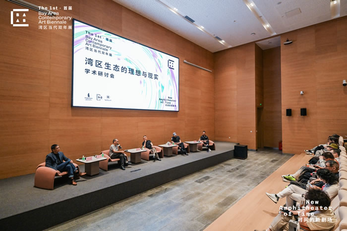 強大經濟體上的超級城市、大型美術館、國際雙年展、頂級藝術博覽會以及新興藝術家群體構成了珠三角大灣區當代藝術的基本生態樣貌。 下午4點,本次展覽學術主持皮道堅、藝術家陳侗、林一林、澳門大學教授姚風、策展人郭赟進行了以“灣區生態的理想與現實”為主題的學術論壇。