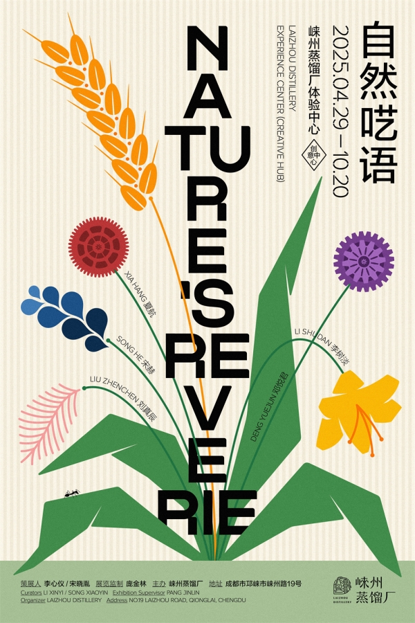 2025年4月29日,崍州蒸餾廠體驗中心在籌備近五年后正式啟幕,并在園區創意中心展廳中呈現五位藝術家的群展“自然囈語”。