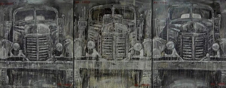 《解放車》張鍵,布面油畫,150×390cm,2010年(銀川美術館藏)