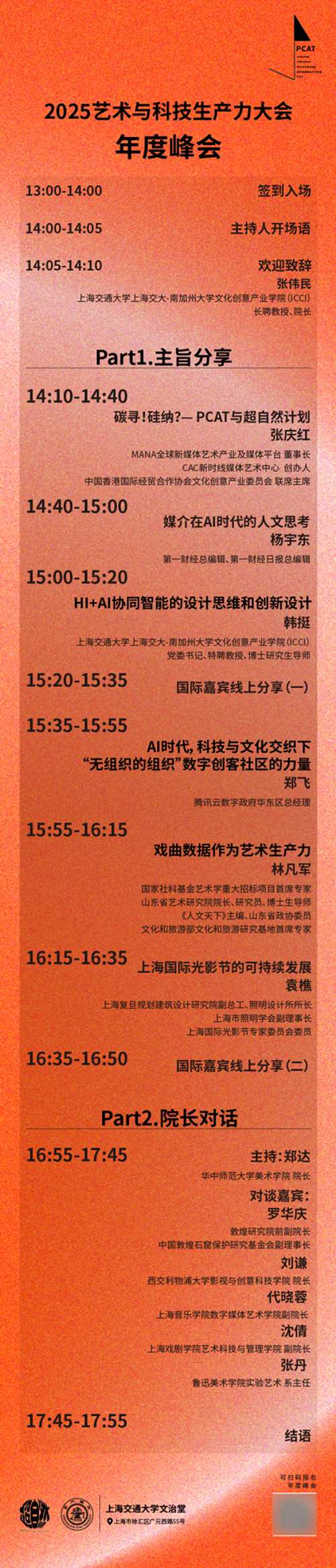 本次年度峰會,我們將邀請到藝術家、創作者、學者及文商旅的專家們,共同探討藝術與科技如何重構內容生產邏輯?人類如何在人機協同中重新定位價值?……