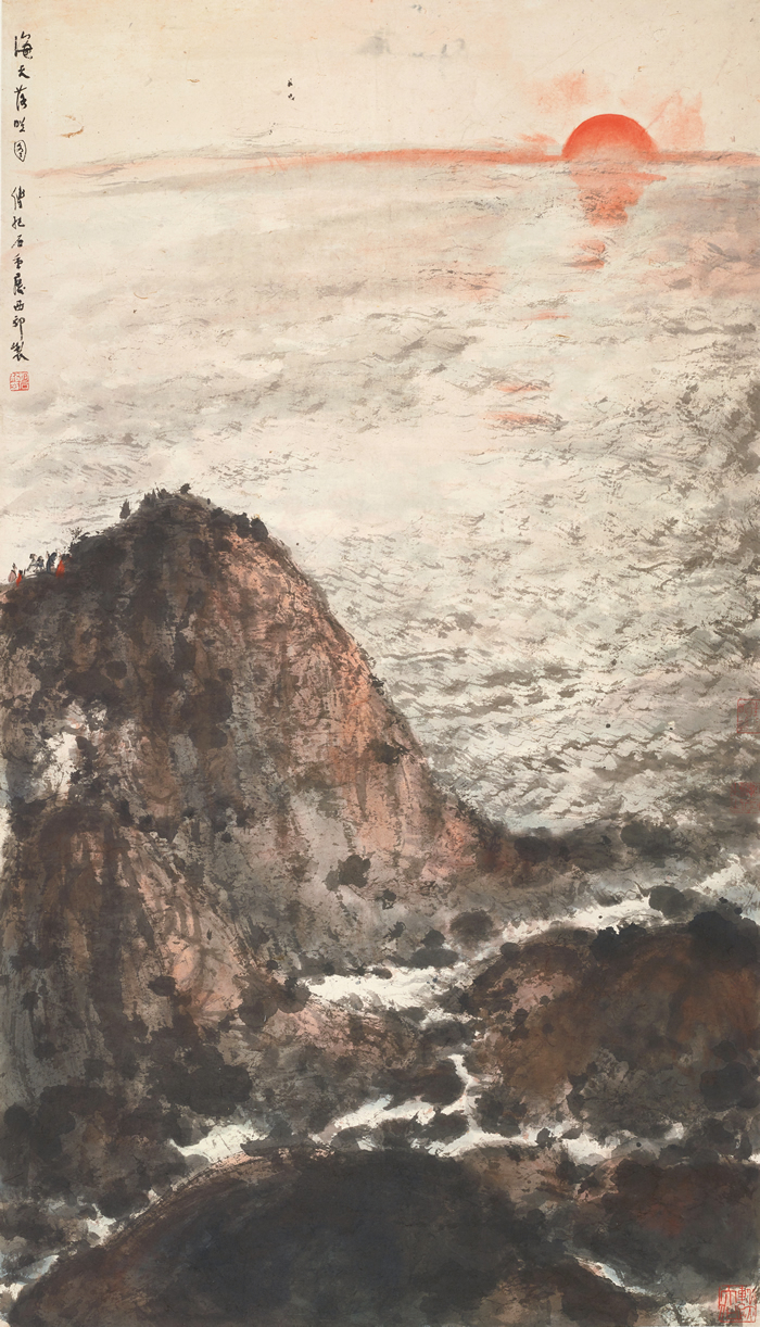 Lot 3172,傅抱石(1904~1965),海天落照圖,立軸 設色紙本,104.2×60 cm