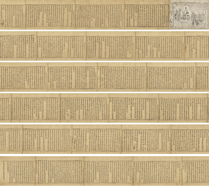 Lot 3206 (唐)義凈 譯,趙城金藏《根本說一切有部苾芻尼毗奈耶卷第十八》,金皇統至大定間(1141-1189)刻本,1軸,版畫:29×38 cm、刻經:28.7×1190 cm