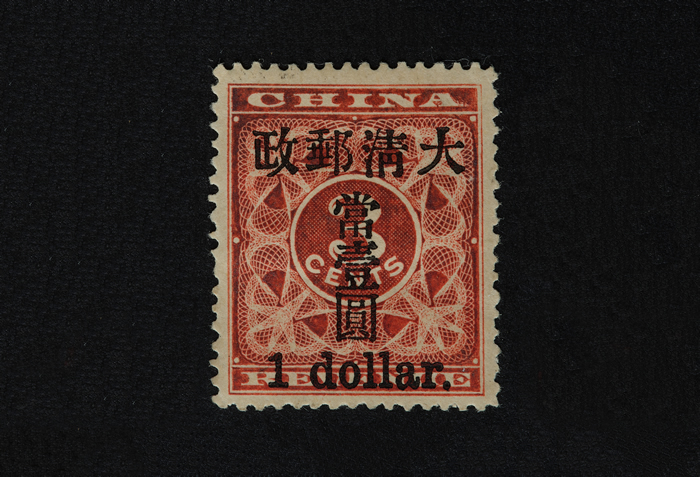 Lot 6046,紅印花加蓋暫作郵票小字1元新一枚顏色鮮艷,齒孔完整,原膠貼紙,上中品