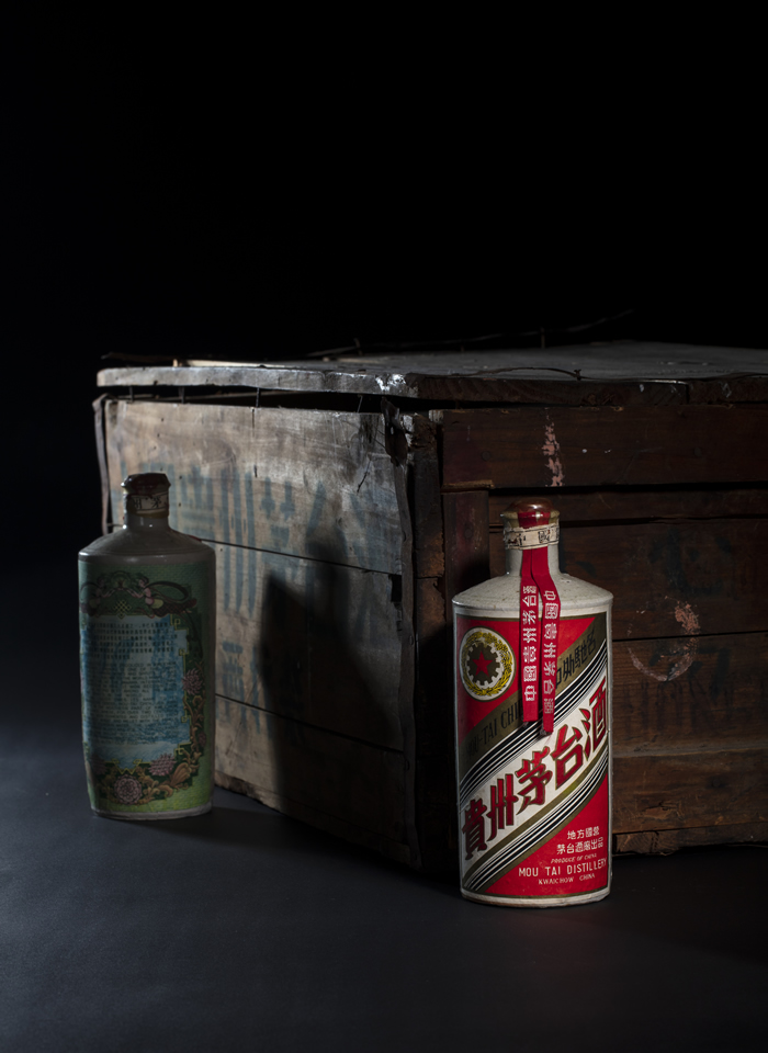 另一件本場的重要拍品1966年產飛天牌茅臺酒(繁體貴字帶盒)此酒為乳白玻璃瓶,深紅色封膜有磨砂質感,飄帶較長,正標及飄帶上的“貴”字為繁體,兩條飄帶上刺繡的“中國貴州茅臺酒”成對稱式,背標為中英文對照說明。1966年3月時任茅臺酒廠廠長劉同清和技術員季克良參加輕工部召開的出口酒工作會議之后,決定茅臺酒陶瓷瓶改為螺旋口的白玻璃瓶,用塑料旋蓋。本標的為外銷日本茅臺酒,當時的海外經銷商會在外配制一個包裝盒,在增加美觀的同時還可以保護瓶身,并瓶口處也會貼當時外商的封條,包裝盒并非茅臺酒廠制作,是由茅臺酒經銷商日本總代理江滋貿易株式會社在日本印制,他的存在也是講述著一段獨有的歷史文化,存世稀少。