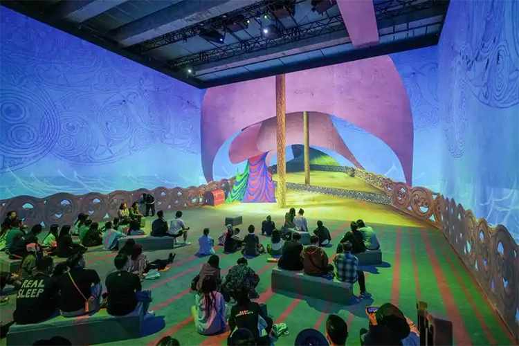 中國卷軸畫的“流動視角”給予他全新的啟發,畫面沒有固定焦點的畫作可以讓觀者的視線隨著畫面自由游走。在此次沉浸式藝術展中,觀眾可以直觀感受到他對于透視的理解以及中國畫對他造成的影響。在一些風景畫作中,觀眾仿佛能漫步其中,感受空間流動,東西方藝術融合出別樣火花。