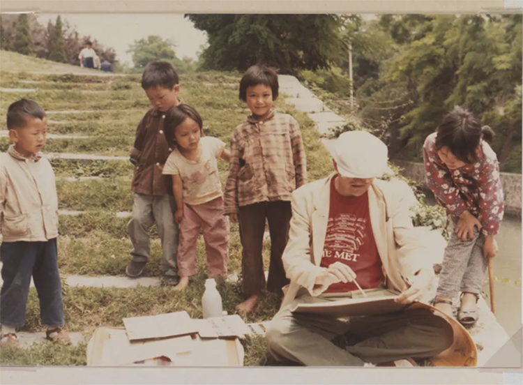 “你不能一眼看完一整幅中國畫,但它卻能帶給你一種旅行般的體驗”。1981年,霍克尼與英國詩人斯蒂芬·斯彭德結伴來到中國,三周時間里,他們走過香港、北京、西安、上海等地,展開了一場橫跨中國的藝術之旅。這段旅程,霍克尼深受中國傳統繪畫啟發,尤其是對“散點透視”的興趣,改變了他對空間、敘事和視覺結構的理解。