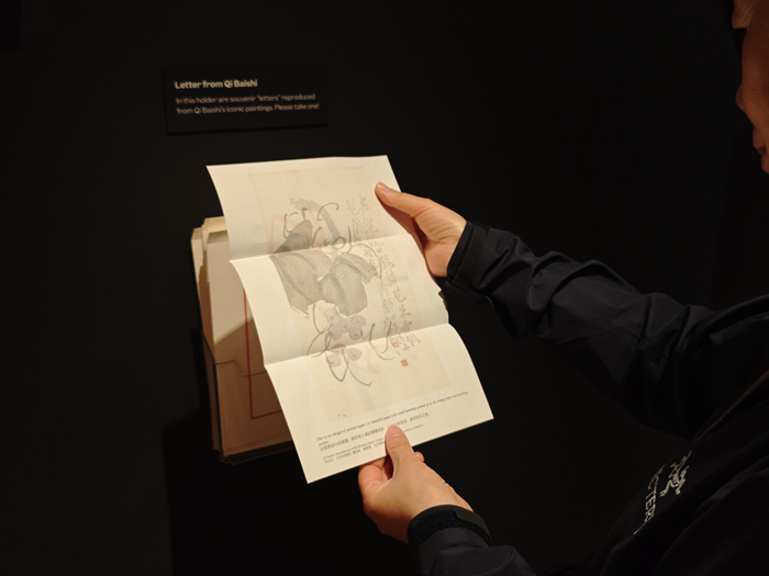 展覽特別設置了“白石信箱”,其中靜靜躺著數封來自“白石老人”的書信。每封信件隨機封存著一幅老人的小畫、即興詩箋、篆刻印文或祝語。觀眾可隨機抽取這些精心復刻的書信,將一份中國文人獨有的“魚雁往來”之雅趣帶回家。在這個即時通訊的時代,這些信紙不僅傳遞著筆墨的溫度,更延續著中國傳統文化中最珍貴的儀式感。愿這些跨越重洋的藝術信使,能在海外觀眾與齊白石的藝術世界之間,搭建起一座對話的橋梁。