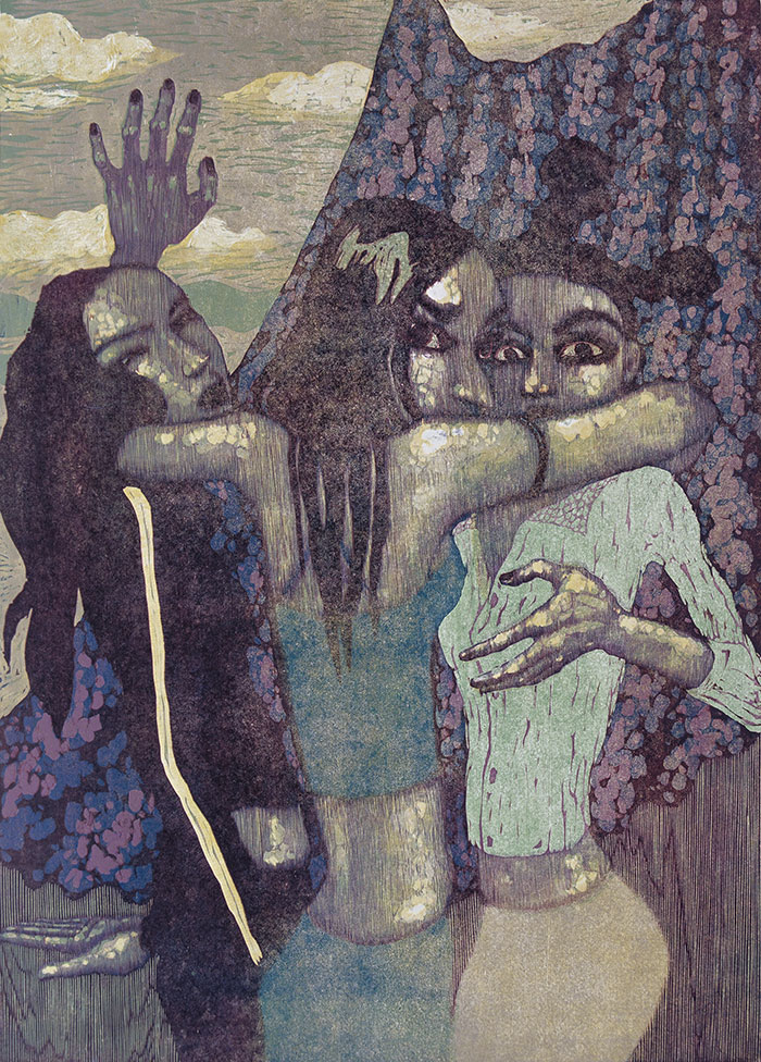 姜淼:現在的畫面還是沿用了早期木刻的方式,只是當時的畫面只有一層黑,后來我逐漸把一些局部的抽象因素給放大了。因為木刻本身的語言就是抽象語言。它上手不是說我用筆畫一個什么,它是刀刻,是你拼湊的所有點線面的關系,這個點線面的關系是抽象的基礎,所以木刻非常容易走向抽象。