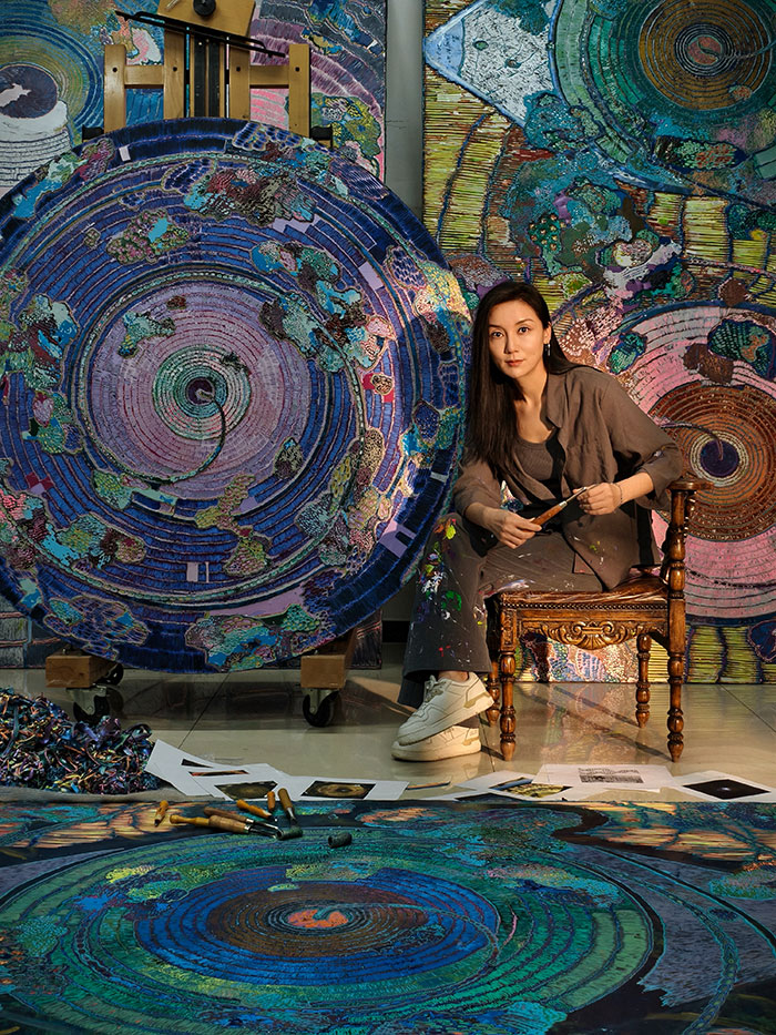 這種開放的態度,也源于她對創作本質的理解。她形容靈感如“神啟”,是某種超越個人意志的降臨。她的創作一端連接著中國傳統美學觀照世界的方式,將傳統的審美方式升華為個人感知世界的精神維度;另一端則在跨文化的語境中,汲取著西方文明和藝術的養分,特別是印象派通過色彩與光影捕捉瞬間感受的表達方式。同時,她亦未止步于兩種語言文明的簡單融合,而是在一種更為超然的創作狀態中,將自我轉化為藝術表達的通道,在與“天意”的默契合作中,將作品推向極致。