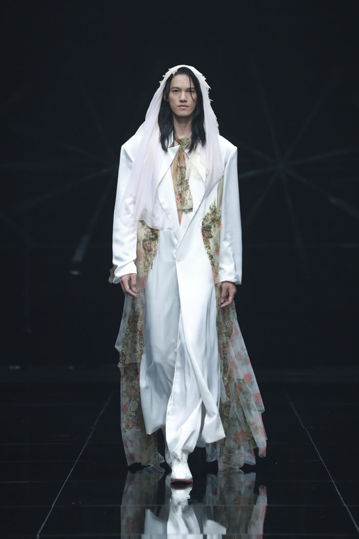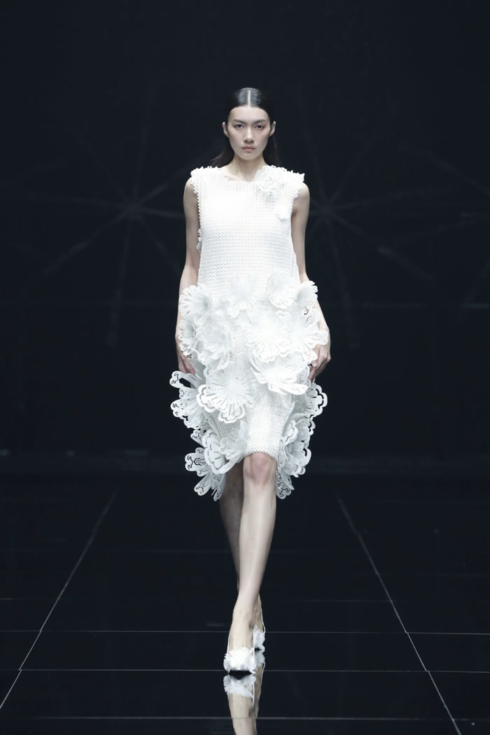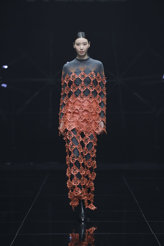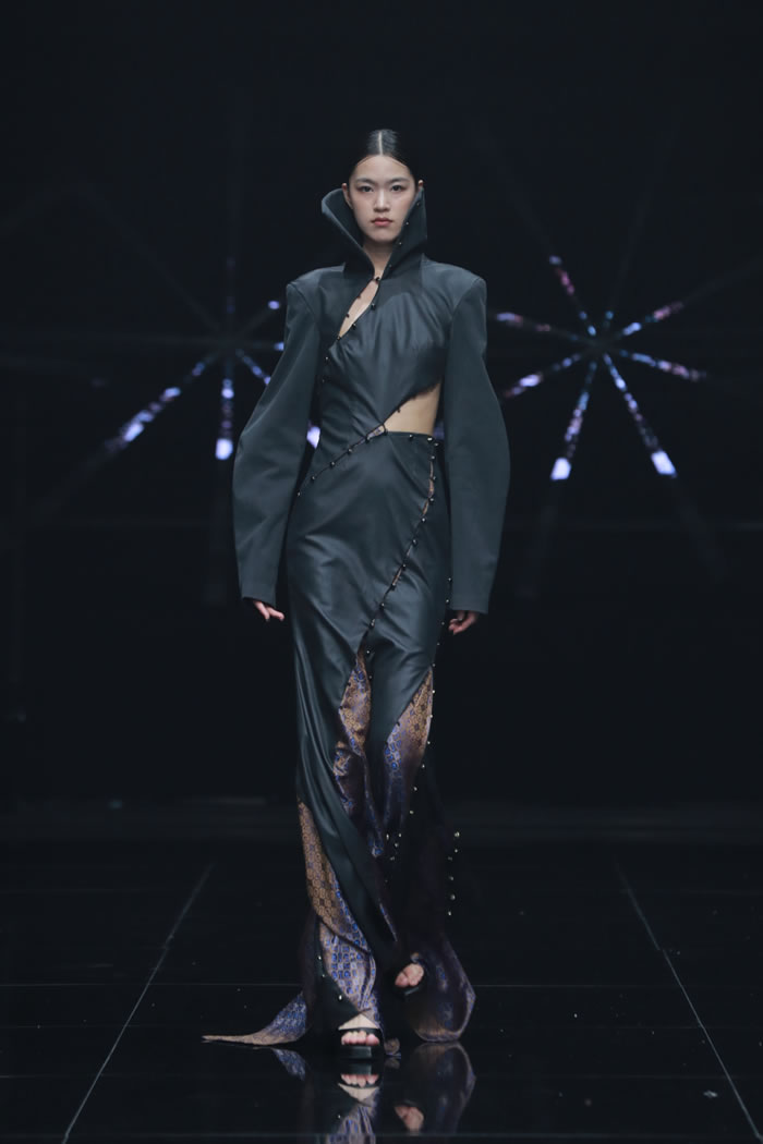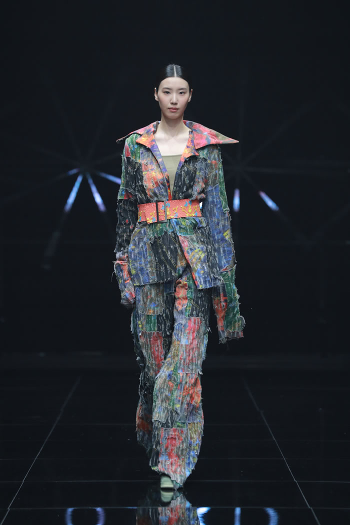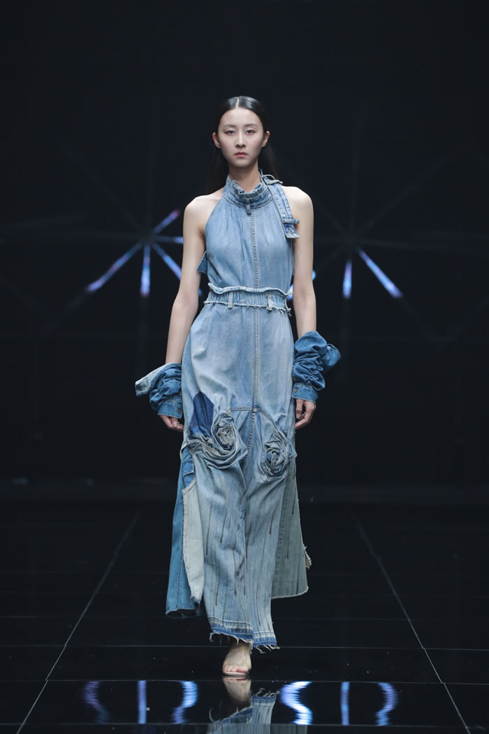 在“重疊”的主題之下,同學們在材料選擇與造型語言上大膽嘗試,嘗試建構一個融合傳統與未來、現實與幻想、身體與精神的多維時尚世界。通過對文化、技術、生態與身份等議題的深入回應,彰顯了新一代設計師以衣為媒,跨越邊界、重構敘事的創作理念。一件件作品在舞臺中交相輝映,給觀眾呈現一場精彩的視覺盛宴。