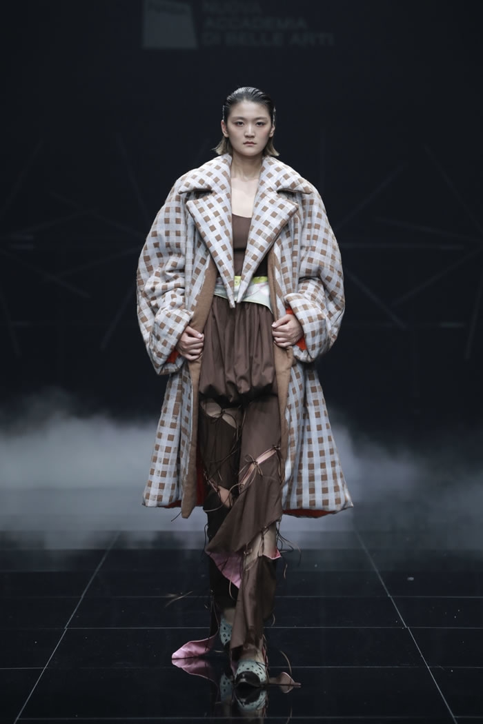 本屆發布會以“重疊”為主題,探討多重價值觀、材料語言、文化維度和設計思潮之間的重疊交融。發布會現場展演清華大學美術學院染織與服裝藝術設計系本科與碩士研究生作品60套,意大利NABA新美術學院學生作品12套,這些作品展現出對傳統文化、可持續時尚、藝術與科技等多個角度的理解思考,為觀眾帶來一場充滿實驗性與藝術性的時尚盛宴,共生煥彩。