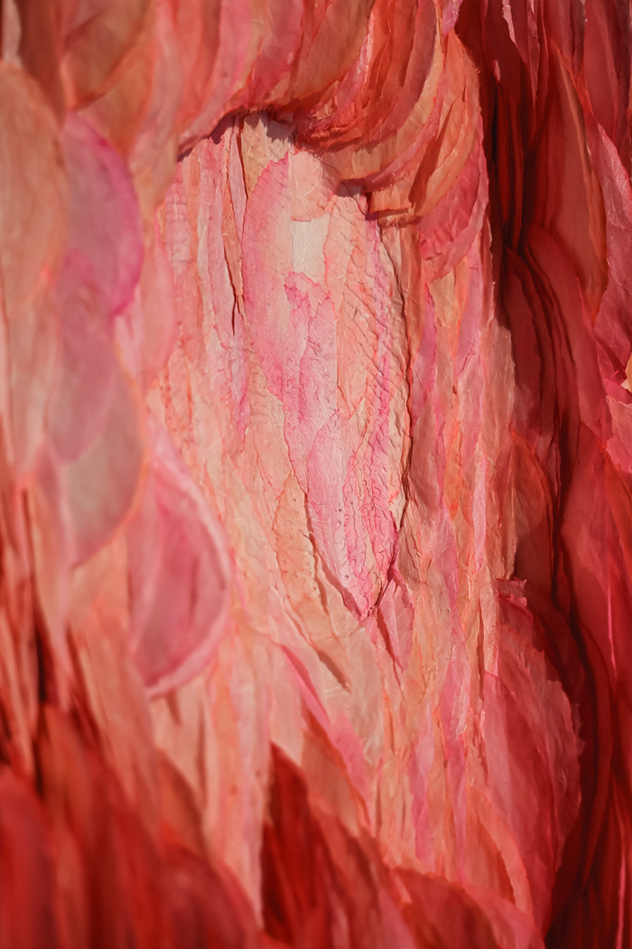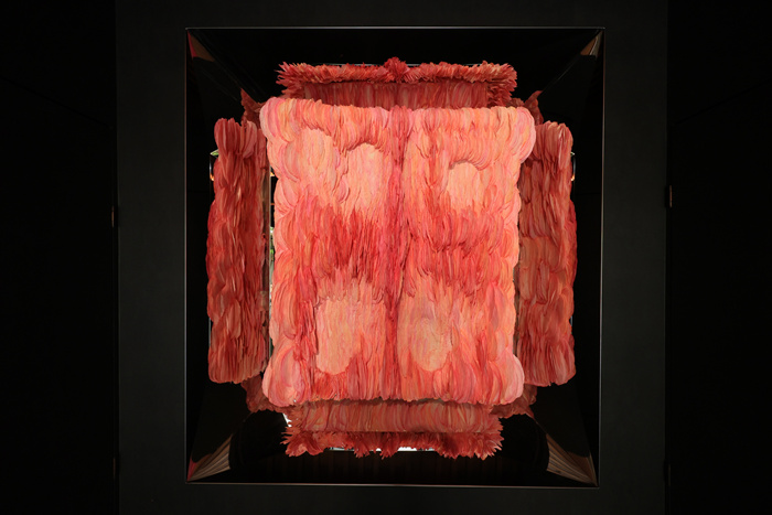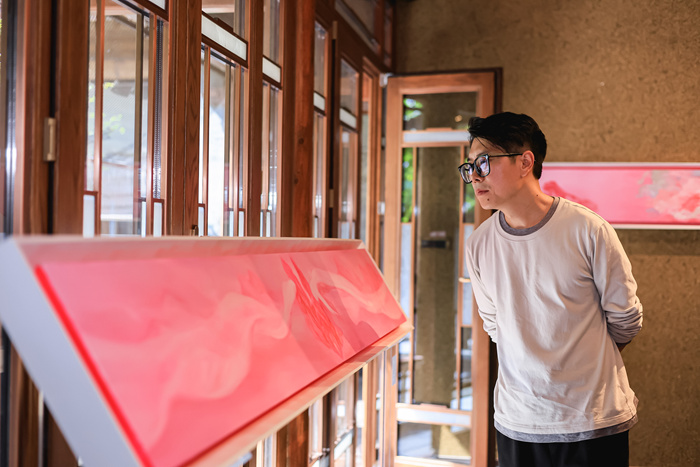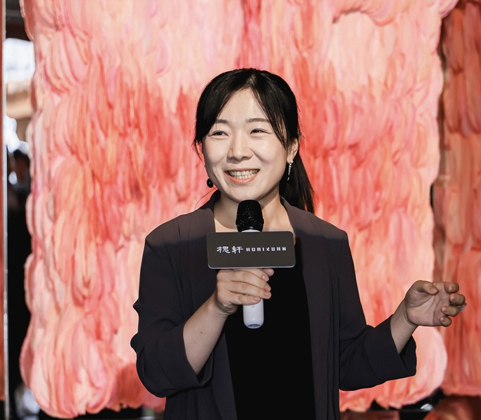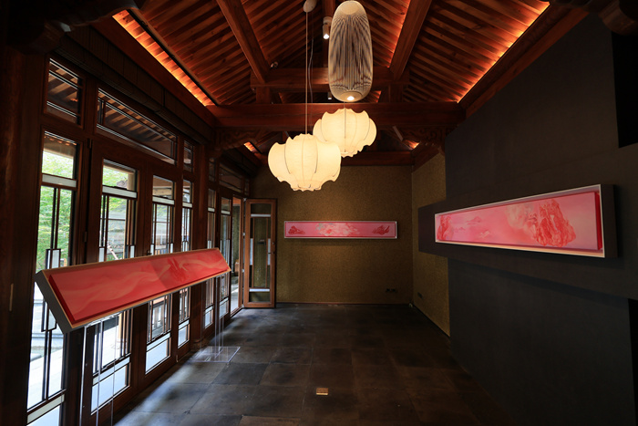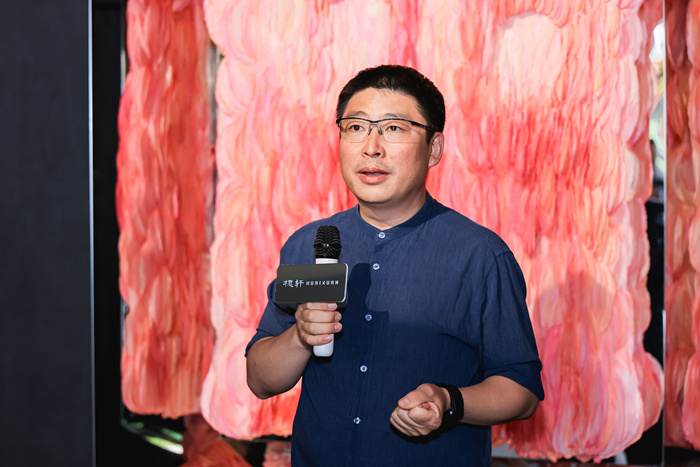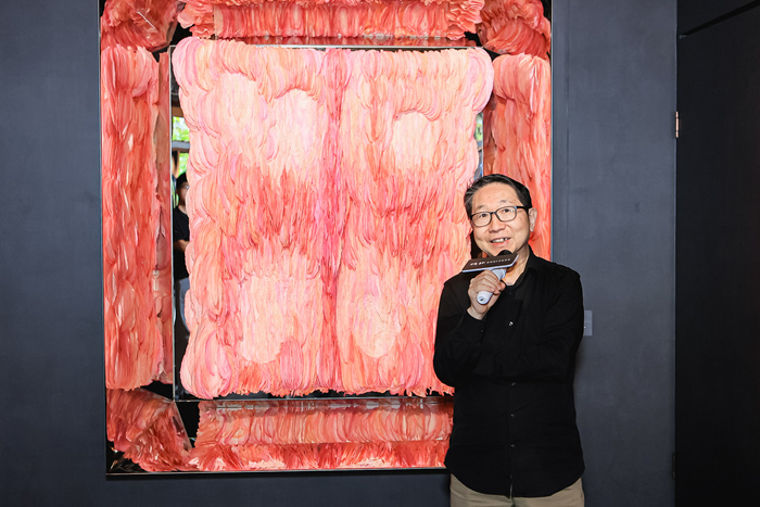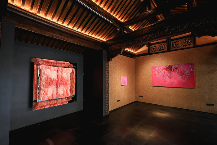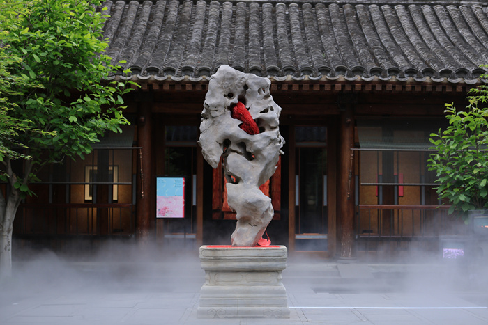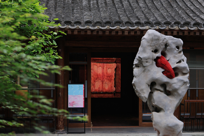 著名藝術史學者、當代藝術評論家尹吉男在致辭中提到,本次展覽的地點“槐軒”之前是20世紀著名紅學家俞平伯的宅院,張曉雪本次展覽讓這座宅子顯現出“粉學”的視覺趣味。中國藝術特別強調“氣韻生動”,園子里的這座太湖石因藝術家安裝上的“心臟”變得特別生動。張曉雪的作品是帶有實驗性的,同時又有很多書寫性。這種書寫性通過制作,比如版畫的壓印,成為一個個裝置之后,感覺上有兩個自己在對話,一個帶有傳統力量,一個特別當代,二者之間的對話就形成了一個個特殊的作品。