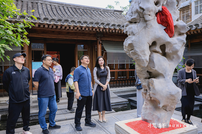 藝術家張曉雪在發言中表示自己在創作中一直持續聚焦在人的“感知”地帶,以及人在感知這個世界時所形成的某種波動,因此她的作品呈現出像神經元一樣的單元樣態如同她的筆觸般加以組織和延展,在這條脈絡上不斷延展下去,生成更多的可能性。這次籍由在槐軒這座古典院落辦展的契機,她因緣際會地給太湖石這個凝聚傳統古典審美的象征物加裝了她的裝置藝術作品,像是給太湖石加上了一個“心臟”。有了“心臟”的太湖石似乎激活了某種對文化固有觀念的反思,引發了大家對身體與文化之間內在關聯的重新思考。