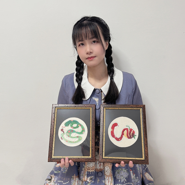 作品《蘋果蛇》創作于2025年,即中國生肖蛇年,而蛇與蘋果在西方基督教文化中有著“誘惑”與“禁果”的含義。陳玢綸在這一系列作品中,運用了中國傳統刺繡工藝,通過蛇與蘋果的藝術碰撞,體現了藝術家身處中西文化交織的多元環境里對文化溯源、演變、交融的獨特敘事,探索了中西文化的交織與對比,呈現出別樣的藝術對話。