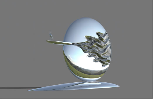 《西溪且留下·靜水流聲》 2020年 160×40×110cm 鏡面不銹鋼