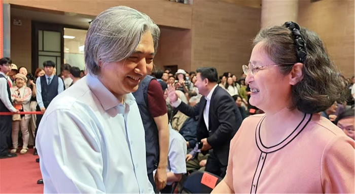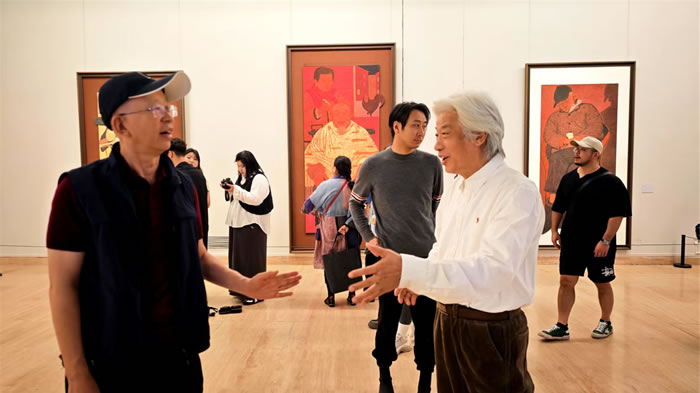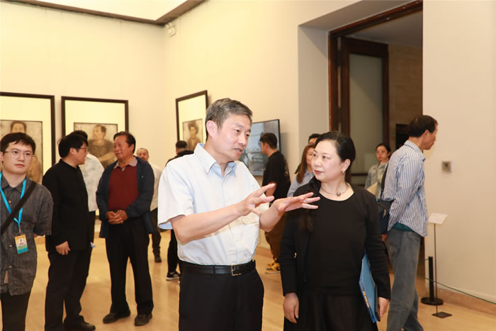 吳為山館長在其致辭中高度評價道:“李傳真以其真摯的情感與感悟去表現‘人’,她的作品中既蘊含著源于生活的真情之‘真’,也展現了藝術家深厚扎實的真功夫之‘真’。她筆下的人物形象能夠深入表現對象的內心世界,這源于她在現實生活中對真情的敏銳捕捉與深刻體悟,因此其作品充滿了動人的溫度與溫情。李傳真在生活中感受真情,在作品中表現感動,使得她的藝術創作與現實生活達到了神韻相通、情感交融的境界。她運用精湛的‘工’筆線條,滿懷崇敬地表達了對勞動者的深厚情感,這種真摯的情感與深刻的感受,使她的努力與所取得的藝術成就,堪稱我們這個時代的驕傲?!?諸迪、左中一、楊承志、吳為山、范迪安等領導嘉賓共同為畫展啟幕。