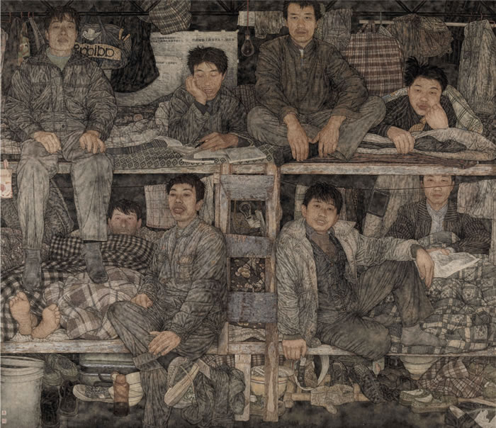 《民工圖 》紙本設色 190cm×200cm 2007年