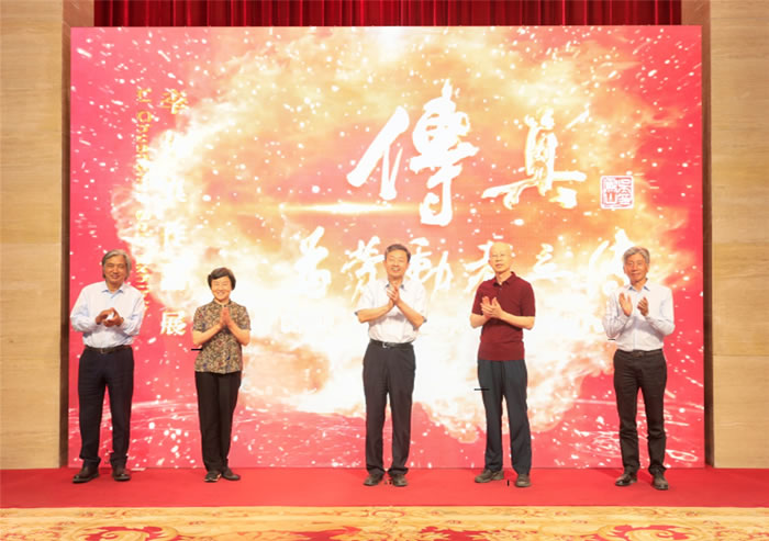 左至右:吳為山、楊承志、諸迪、左中一、范迪安為展覽啟幕