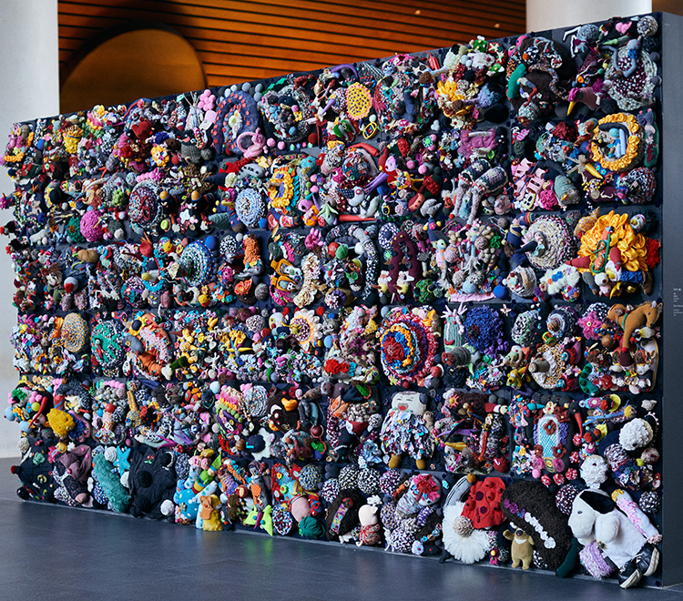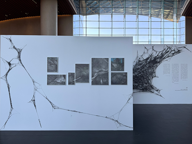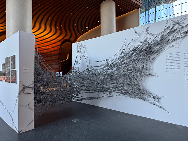 朱離子格《筆觸》,現場裝置,鋼絲球,釘槍,尺寸可變,2025年