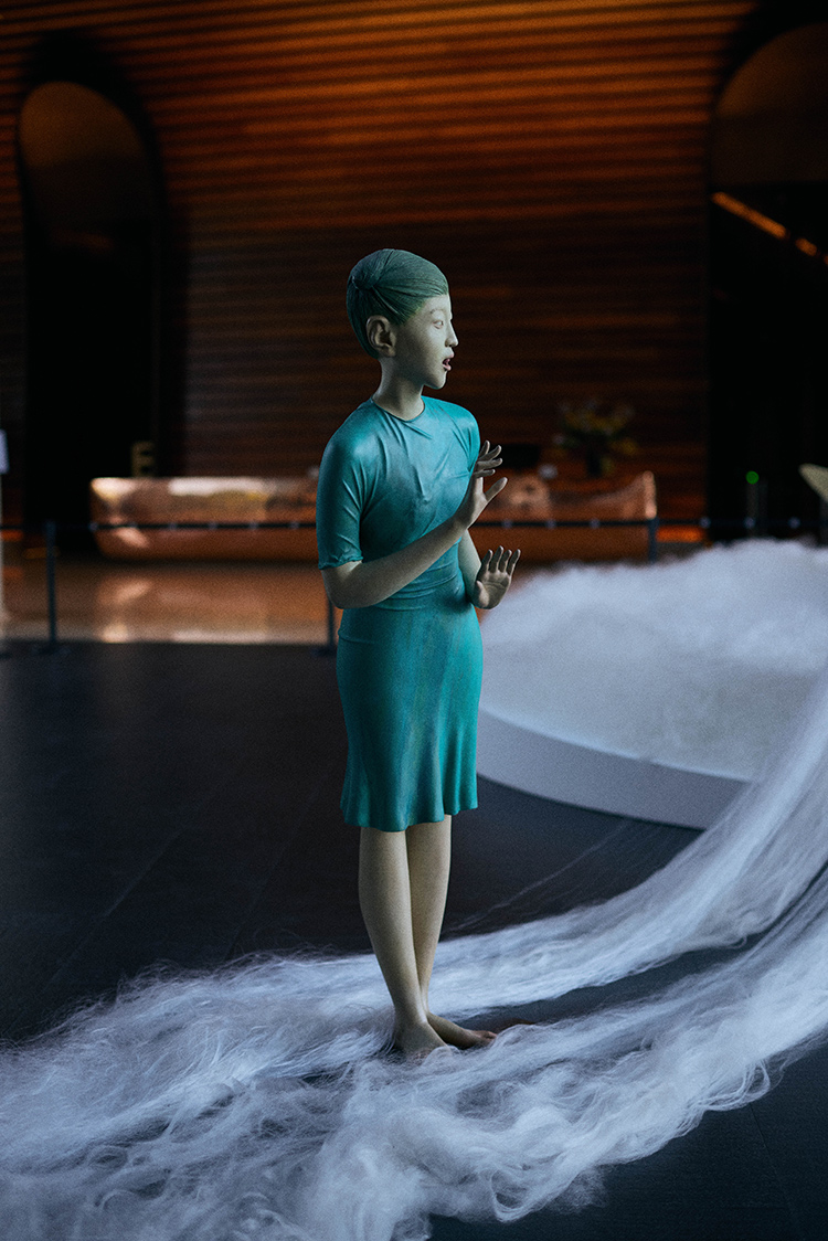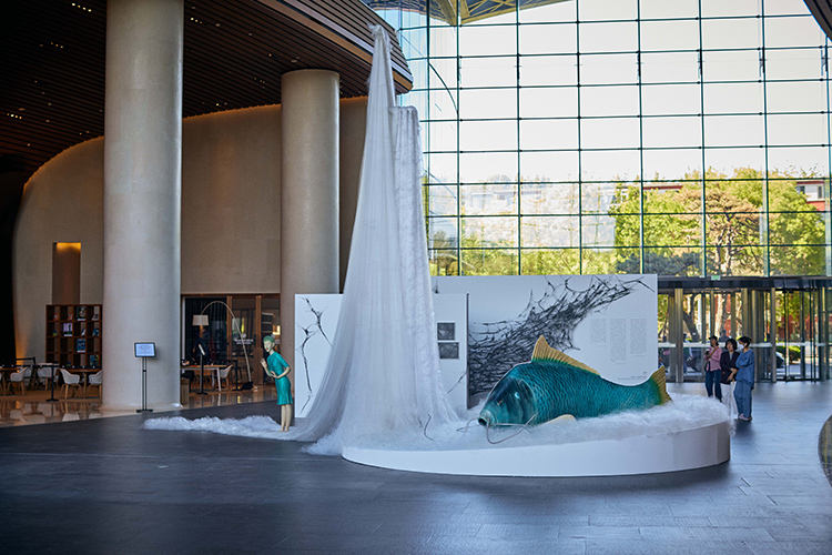 向京《追魚》,雕塑,玻璃鋼著色,168×55×61cm,133×415×200cm,組合后尺寸可變,2014-2016年