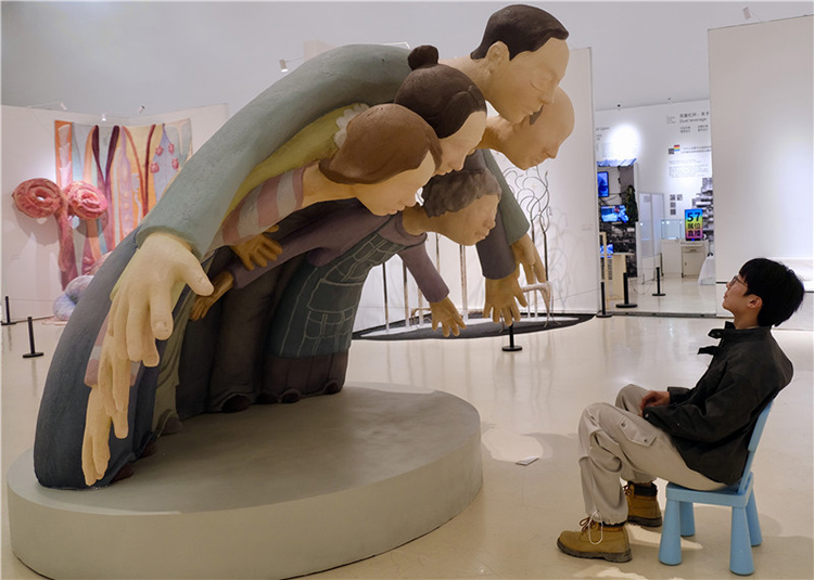 畢業展現場觀眾與作品互動