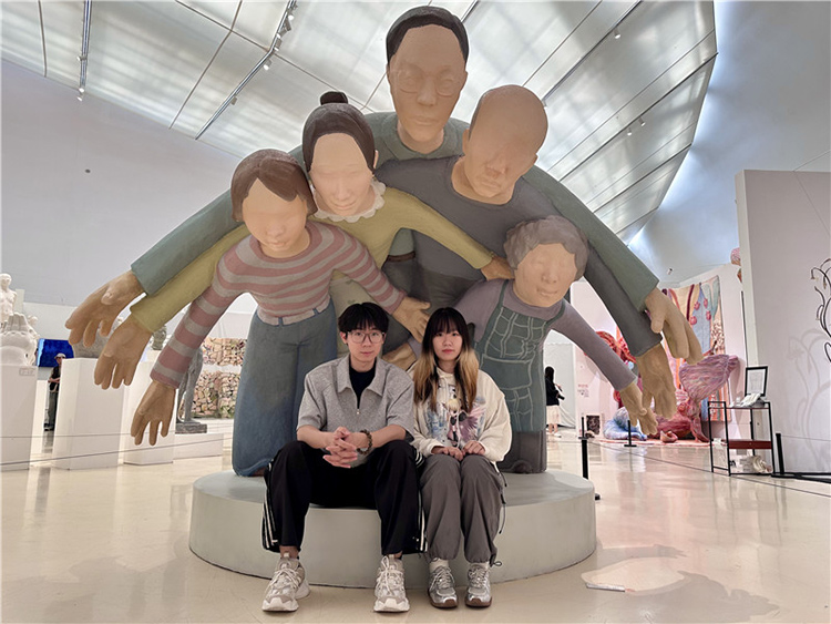 王健燁和姐姐與作品對視