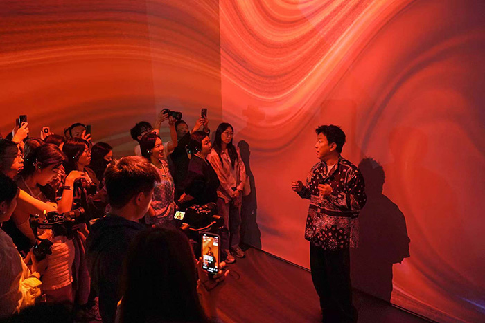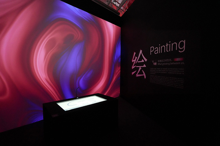 《Breaker?激浪》將兒時與海浪共生的體驗轉化為藝術語言,同時展出個人創作的全新融媒體交互作品《繪》,觀眾用可觸摸屏生成“人機共創”畫作。