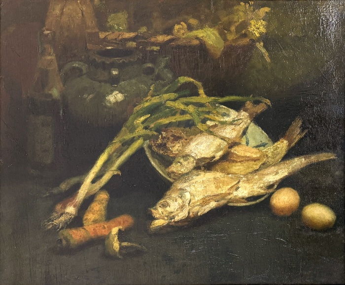 尚揚大學的第一張作業厚重深沉,像是在畫一場關于靜物的儀式。這張畫里的魚干、雞蛋在當時都是相當珍貴的,能感覺到畫家作畫時的義無反顧,像是把千鈞之力注入其中,每一處細節、虛實都處理得相當用心,無可挑剔。