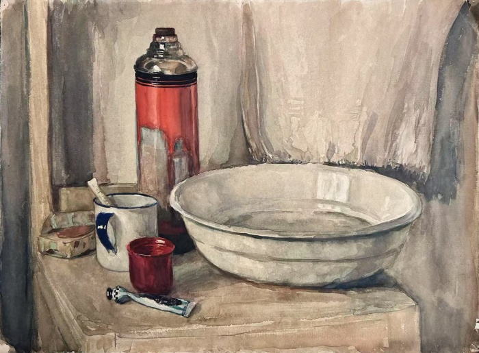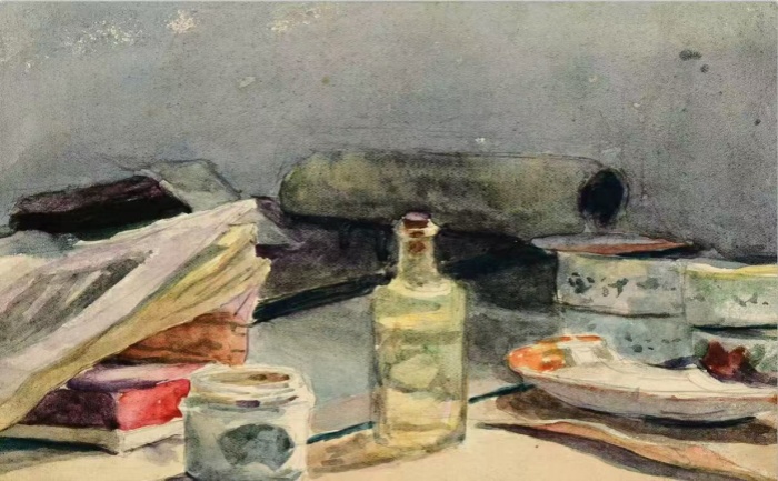 戴澤 中央大學的課桌上 12×18cm 紙本水彩 1944年
