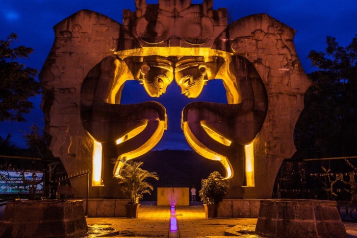 當夏至的晨光如一支金筆,精準勾勒墨江北回歸線標志園的石刻紋路,“哈尼族祭司”手中的燧木開始與太陽進行古老的對話。身著靛藍服飾的族人如藍色的波浪,環繞著取火臺,古老的歌謠如同靈動的晨霧,在天地間緩緩升騰——這不是簡單的時空切片,而是一個民族與自然訂立的永恒契約,是用千年時光書寫在大地上的綠色情書。那簇跳躍的火苗,恰似自然的使者,輕聲訴說著:現代人苦苦探尋的可持續發展密碼,早已蘊藏在祖先與自然和諧共處的智慧之中——以最虔誠的態度索取所需,以最溫柔的方式回饋自然。