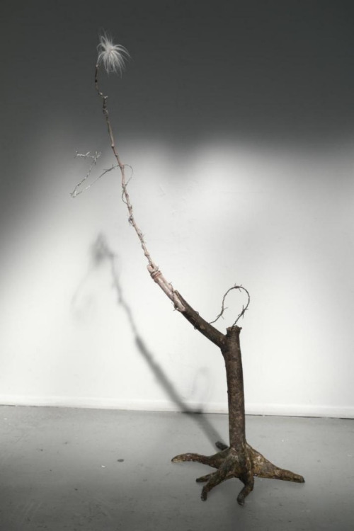 《Mama II》中,傅瑞琳將木質材料與皮膚般的有機質感融合,創造出一種混合著自然與身體特征的視覺語言。這種材質上的對比與統一,激發出一種原始的視覺張力,使植物不再只是自然的隱喻,而成為血肉與木質之間模糊不清的身體延伸。觀者在面對這些貌似柔軟卻結構堅硬的表面時,被引入一種對痛感、親密性與生長本能的直覺式感知。新枝條一層層從舊枝中生長而出,象征代際的連接、創傷的延續與重生的可能。作品通過這種物質與感知層面的張力,延伸了對代際關系、傷害與修復、依附與掙脫的思考。