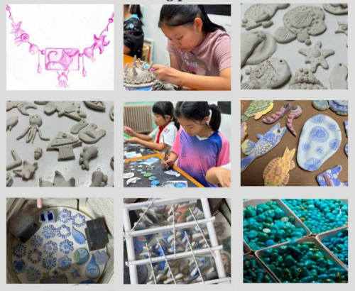 8~9歲孩子們正在為“海洋藝術”主題展覽制作陶瓷首飾,2023