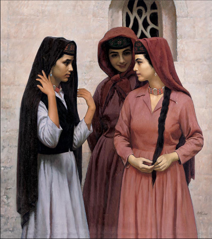 《三個塔吉克少女》 靳尚誼 布面油彩 100×91cm