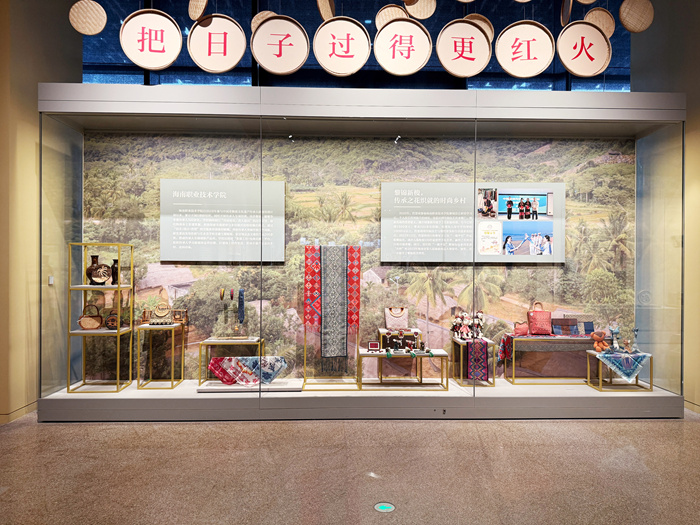 在精準扶貧和鄉村振興的壯闊圖景中,非遺傳承人如星火燎原,以匠心點亮鄉土,以技藝重燃希望。中國非物質文化遺產傳承人研修培訓計劃自實施以來,聚焦鞏固脫貧成果、助力鄉村振興等國家重大戰略。參與院校結合自身優勢,承擔社會責任,以文化人、以藝興村,開啟了一場“智識反哺鄉土”的振興實踐?!包c亮鄉村”展區以地區為脈絡,通過“一地一技一人一故事”的敘事框架,“生態守護,文化潤鄉”“技術賦能,設計興鄉““匠心轉型,產業強鄉”三個單元,展現了29所高校非遺助力鄉村振興的創新實踐。培養一名傳人,振興一項技藝,帶動一方產業。當傳承人從“守藝人”蛻變為“鄉建者”,當高校從“象牙塔”轉型為“創新場”,傳統技藝在當代語境中涅槃重生,古老村落于生態覺醒中煥發新生。非遺振興鄉村的十年歷程,處處輝映著眾多傳承人懷揣赤誠之心,默默耕耘,揮灑汗水的寫照;更有高校、企業、政府攜手共進,推動中國非遺保護傳承與可持續發展的嶄新篇章。
