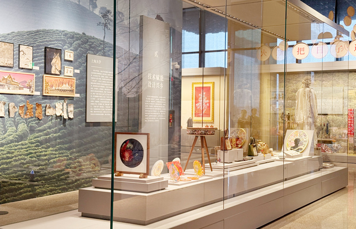 此次“非遺正青春——中國非物質文化遺產傳承人研修培訓計劃十年成果展”傳統工藝、鄉村振興和學術成果3個主題展區,均有上海大學研培成果重點展出。其中,鄉村振興主題展區由上海大學上海美術學院執行院長、上海市公共藝術協同創新中心主任金江波教授擔任策展人。這也是“上海模式”成果的一次集中展現。