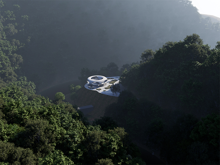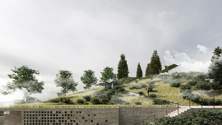 半山云海(半山云海驛站)是建筑師胡興攜手藝術家李怒打造的“東坡樂事”主題藝術場景,共赴一段人、山、云共生的“云海療愈”詩意旅程。山腳設有“山行驛”,以臺地式結構串聯咖啡區與登山步道,是補給起點亦是觀云首站;中段設“吾鄉亭”,融合宋代建筑風格,以藝術化語言傳達對傳統人文的致敬與情感歸屬;山頂處為“臥云榭”,輕鋼折板模擬云層涌動,反光材質與天光交匯,亭體隱入云端,營造出登高望遠、身入云海的沉浸感。整個路徑順應地形高差展開, “最小干預”嵌入自然,以云勢為序,串聯山形與文脈,使每一次登高都成為一次與自然對話、與心靈和解的療愈之行。