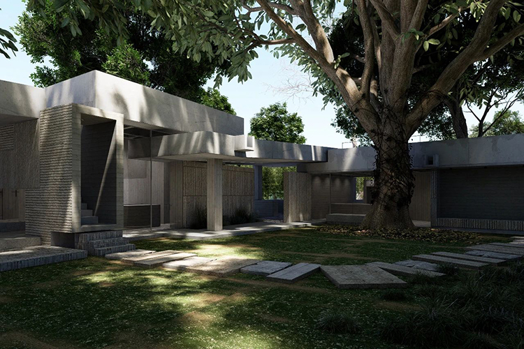從這一場景出發展開想象,午倦宮為每一個睡意來襲的現代人提供了一個可以安置午后倦意的精神場所:憩于樹下,眠于石上。午倦宮在多棵百年大樹所構成的蔭蔽之下,猶如由巨石所構成的遠古遺跡,將午后的倦意帶回人類本能意識中安全的憩居地,為睡意找尋一處安心之所。